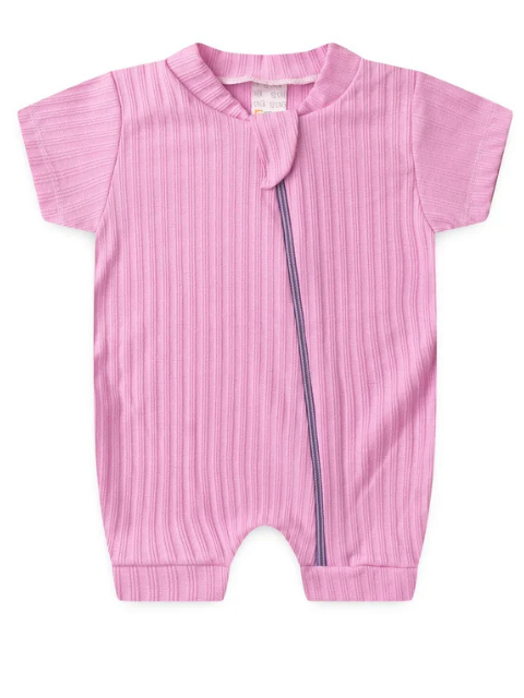 Macaquinho Canelado - Rosa - Liso Canelado 100% Algodão - Bebê Menina